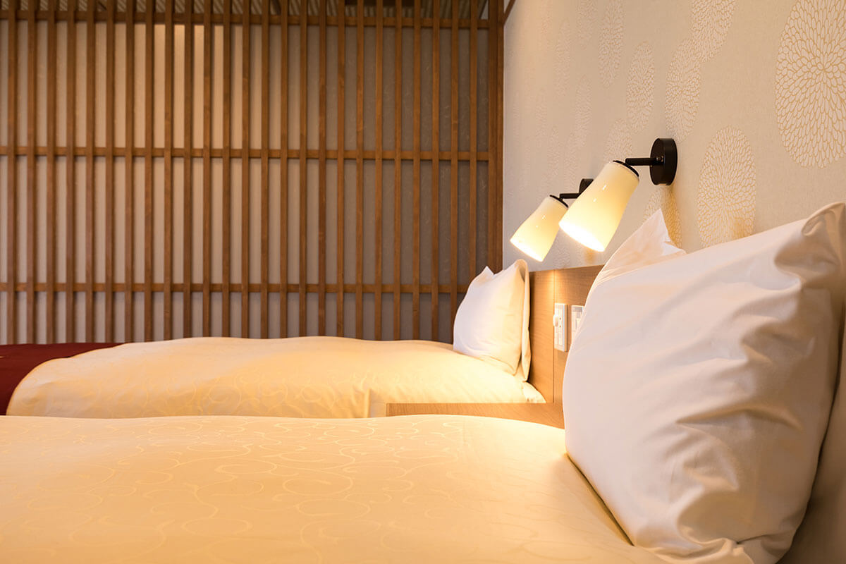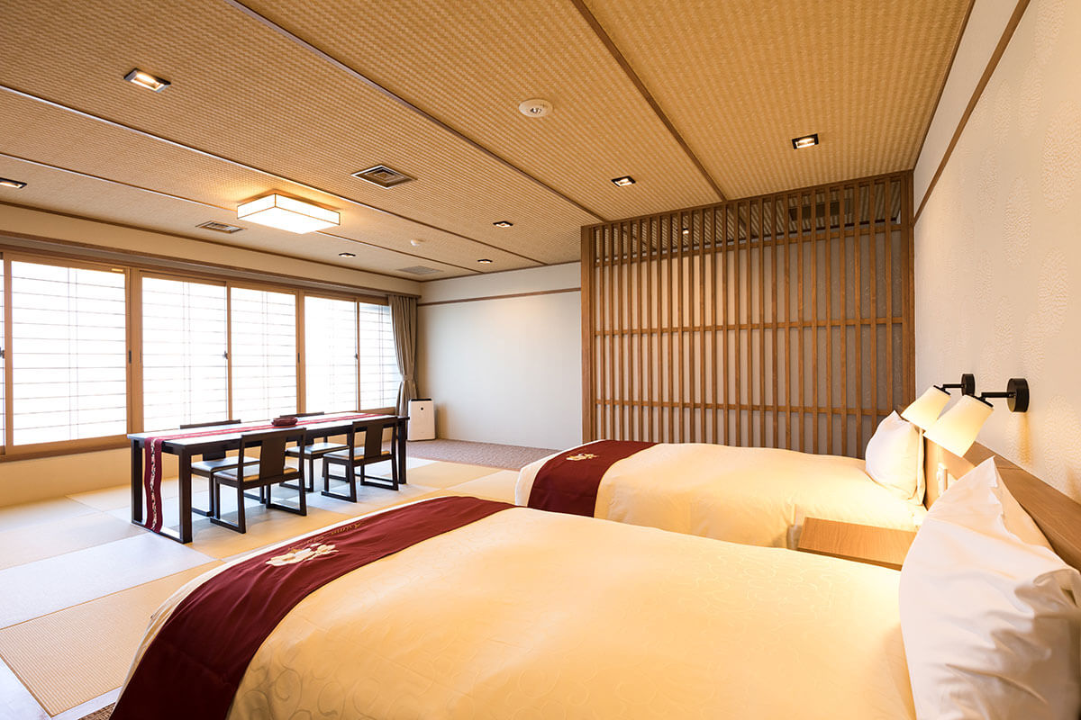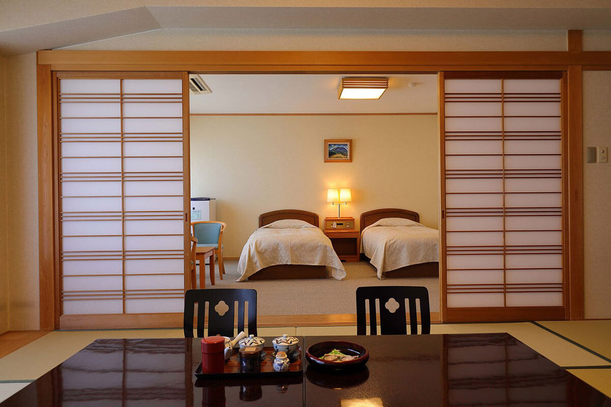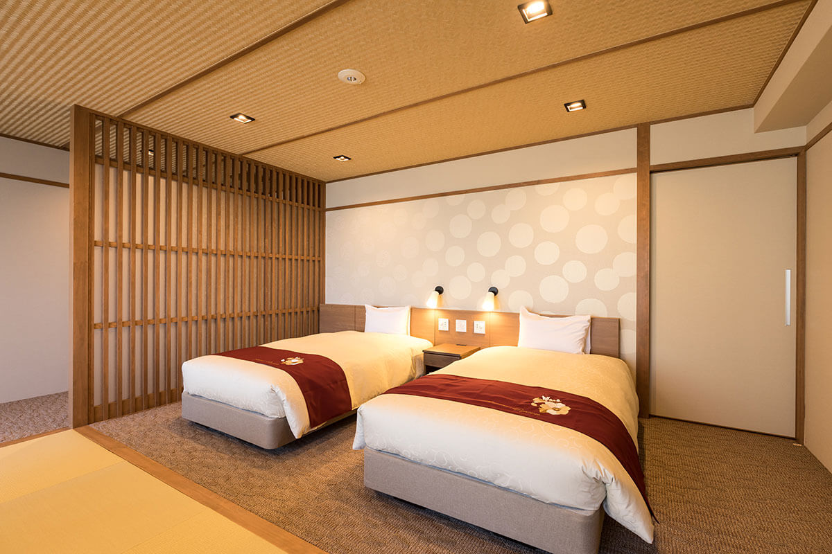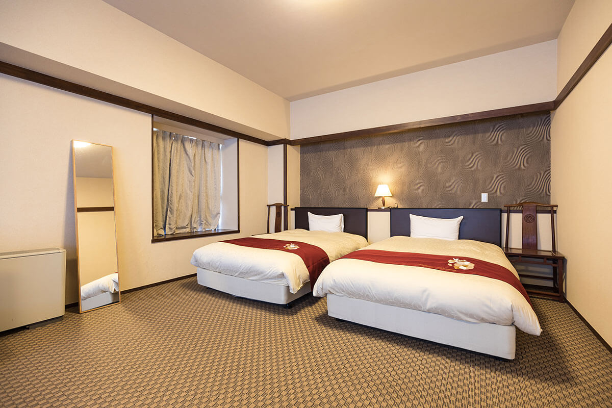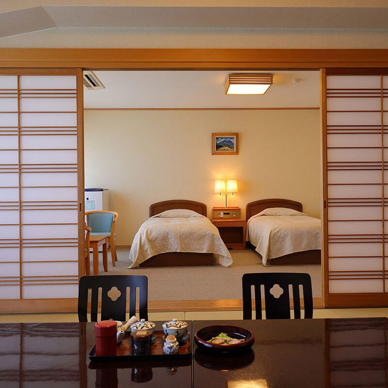 Japanese/Western mixed accommodation with a Japanese room (20²) plus a twin bed room.